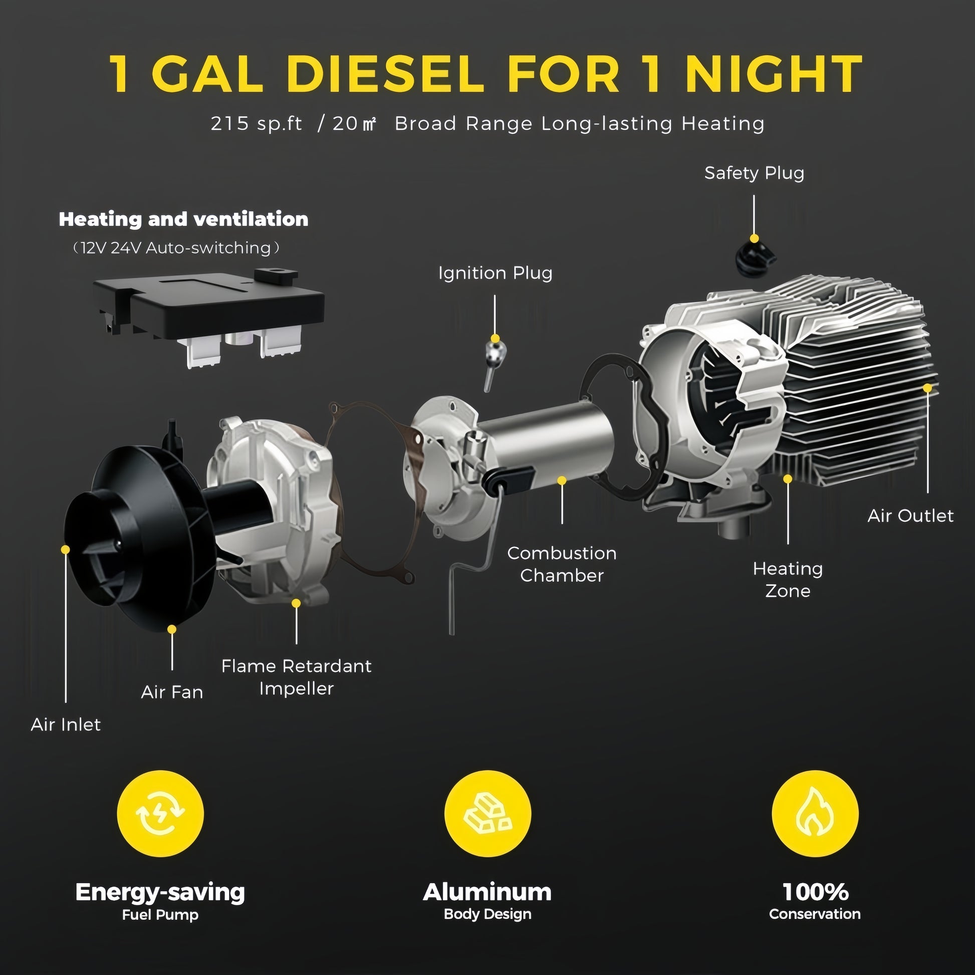 With ≥90% heating efficiency, it consumes only 1 gallon of diesel per night to heat up to 215 ft² (20㎡).