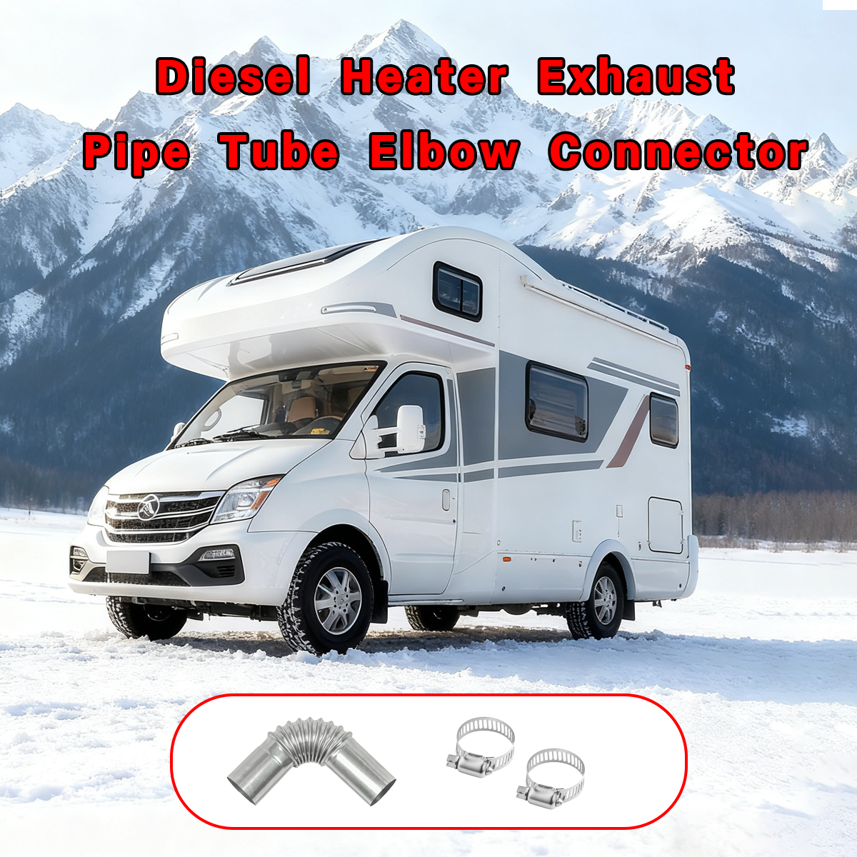 Connector & Clamp Kit: exhaust pipe duct connector kit contains 1 bent exhaust head and 2 clamps, giving you everything required for setup and maintenance. It ensures steady exhaust discharge and long-term reliability for various diesel heaters
